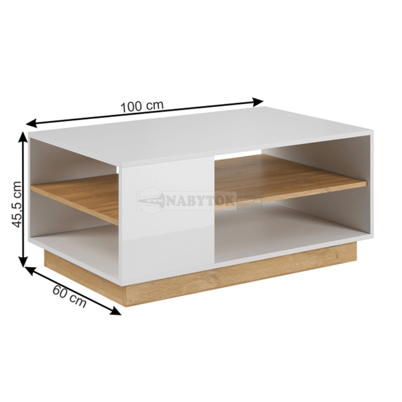 konferenčný stolík CITY - rozmery, farba: biela/dub grandson