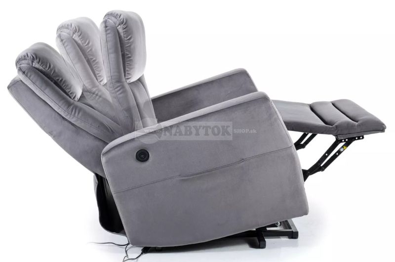 Relaxačné kreslo ADONIS VELVET je moderné a dizajnové kreslo, ktoré Vás zaujme na prvý pohľad. Má praktické vrecko na pravej strane s USB nabíjacím portom a káblové diaľkové ovládanie na nastavenie sklonu kresla. Doprajte si relax po celom náročnom dni v práci.