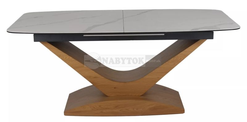 Stôl DOLCE CERAMIC, farba: STATUARIO VENATO (matná biela keramika so sivým žilovaním)/dub - ilustračný obrázok