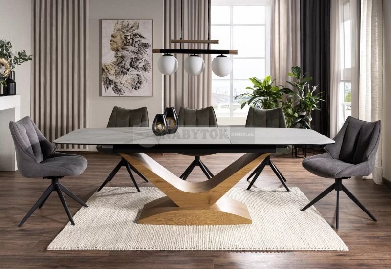 Stôl DOLCE CERAMIC je elegantný rozkladací stôl, ktorý spája luxusný vzhľad talianskej keramiky s modernou a dizajnovo tvarovanou podnožou. Tento stôl si zamilujete na prvý pohľad u Vás v kuchyni alebo v jedálni.
